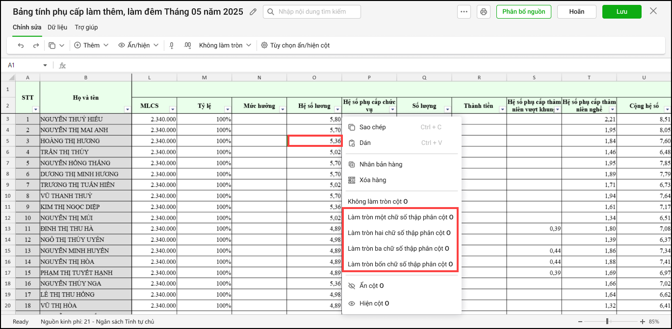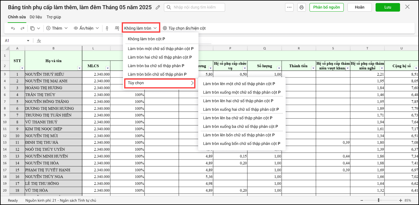Hướng dẫn kế toán làm tròn các hệ số phụ cấp khi nhập bảng tính Thu nhập khác