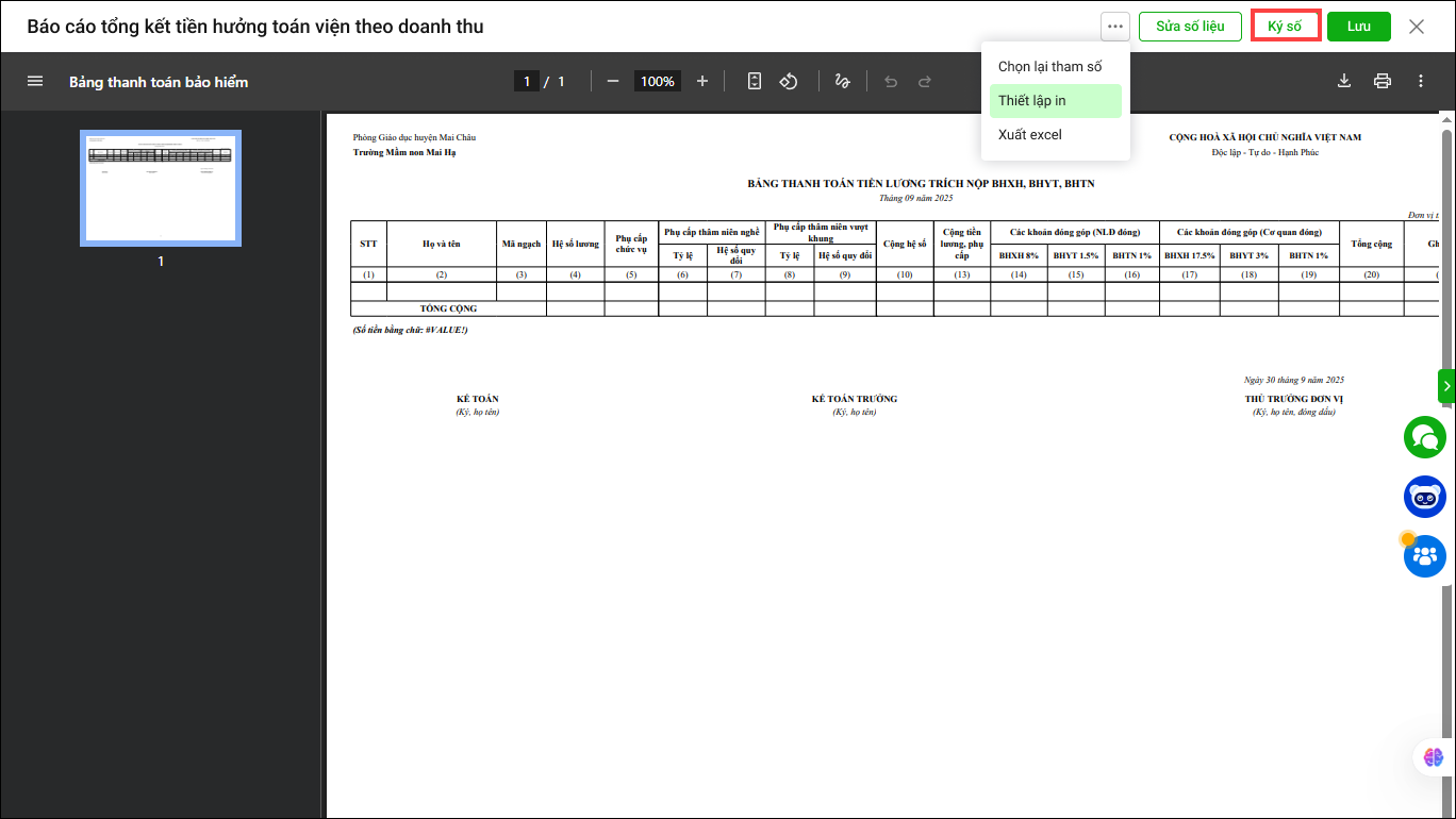 5. Anh/chị bấm Ký số để thực hiện ký số trên báo cáo