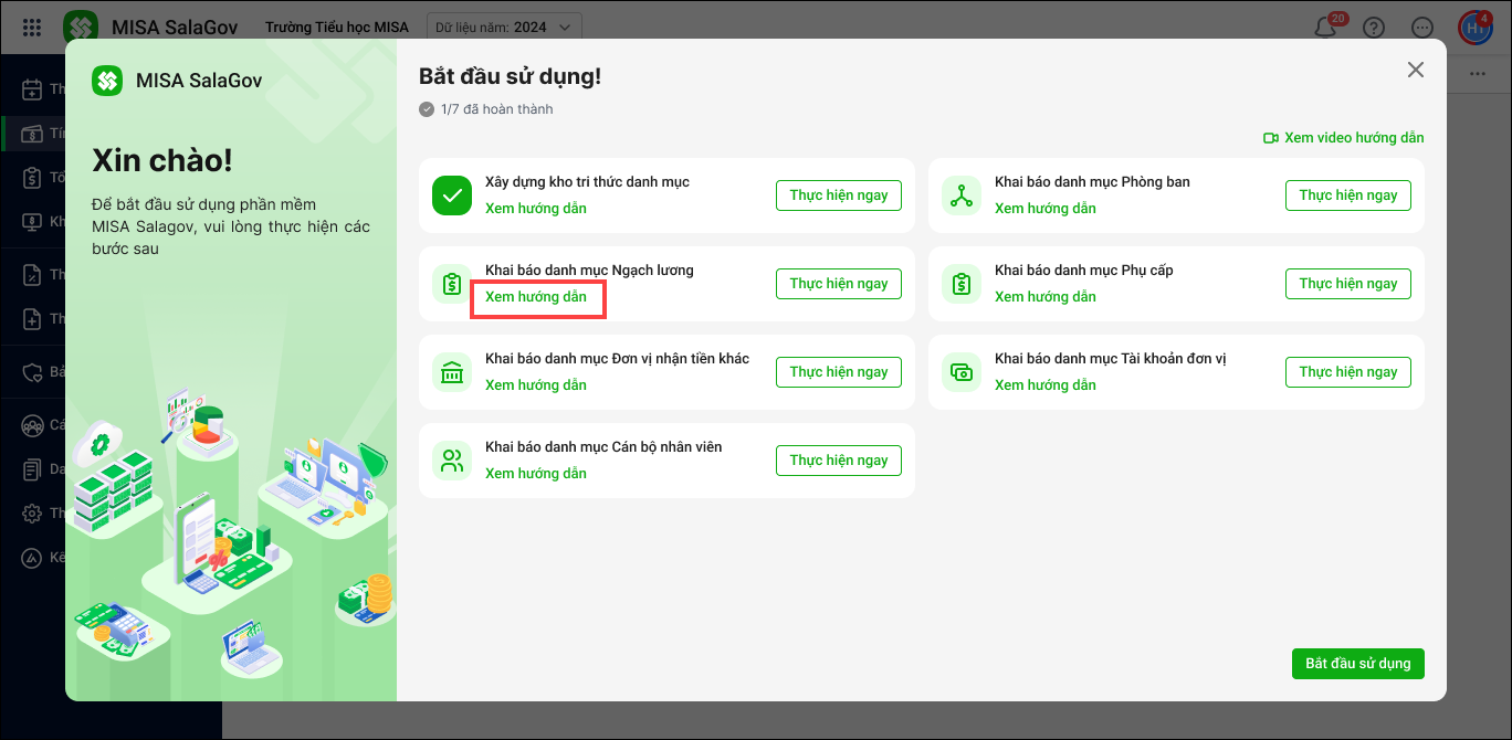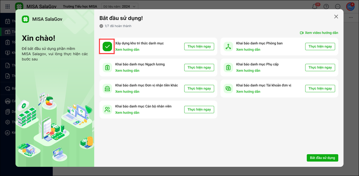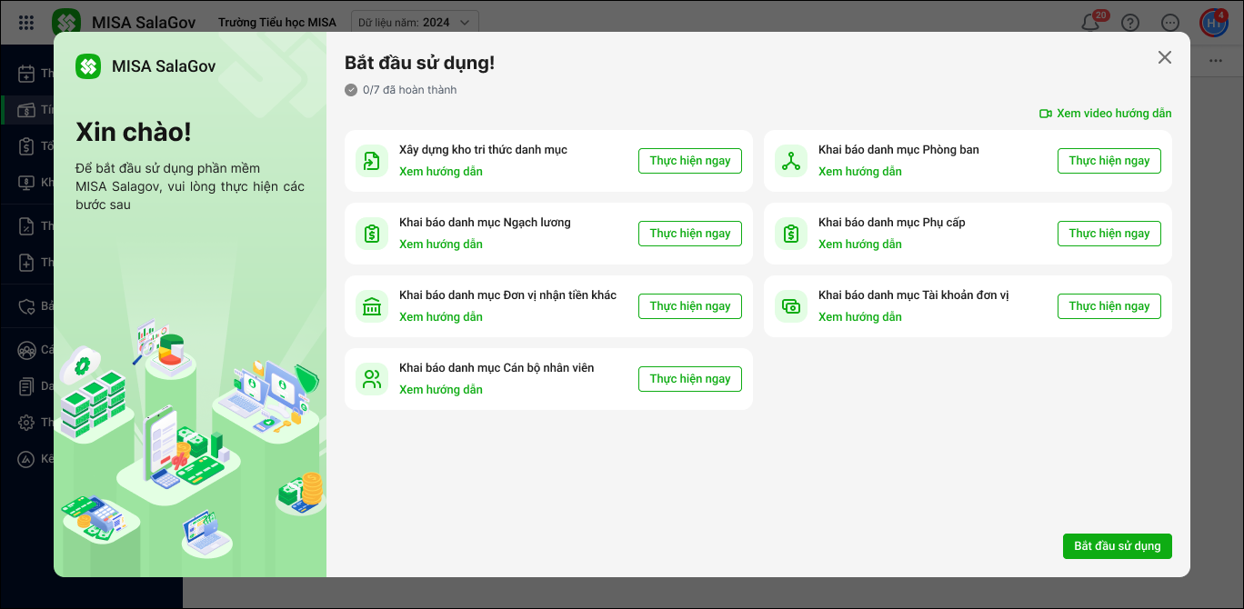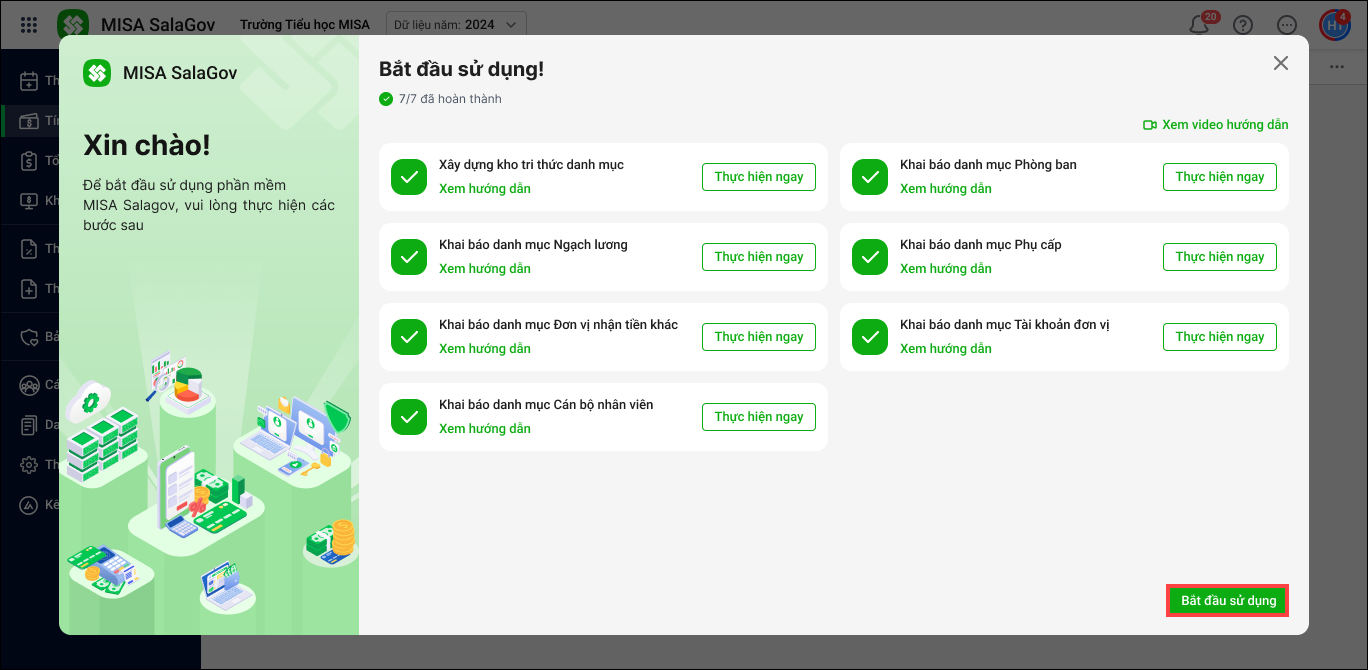 4. Sau khi hoàn thành khai báo các danh mục. Anh/chị nhấn Bắt đầu sử dụng phần mềm