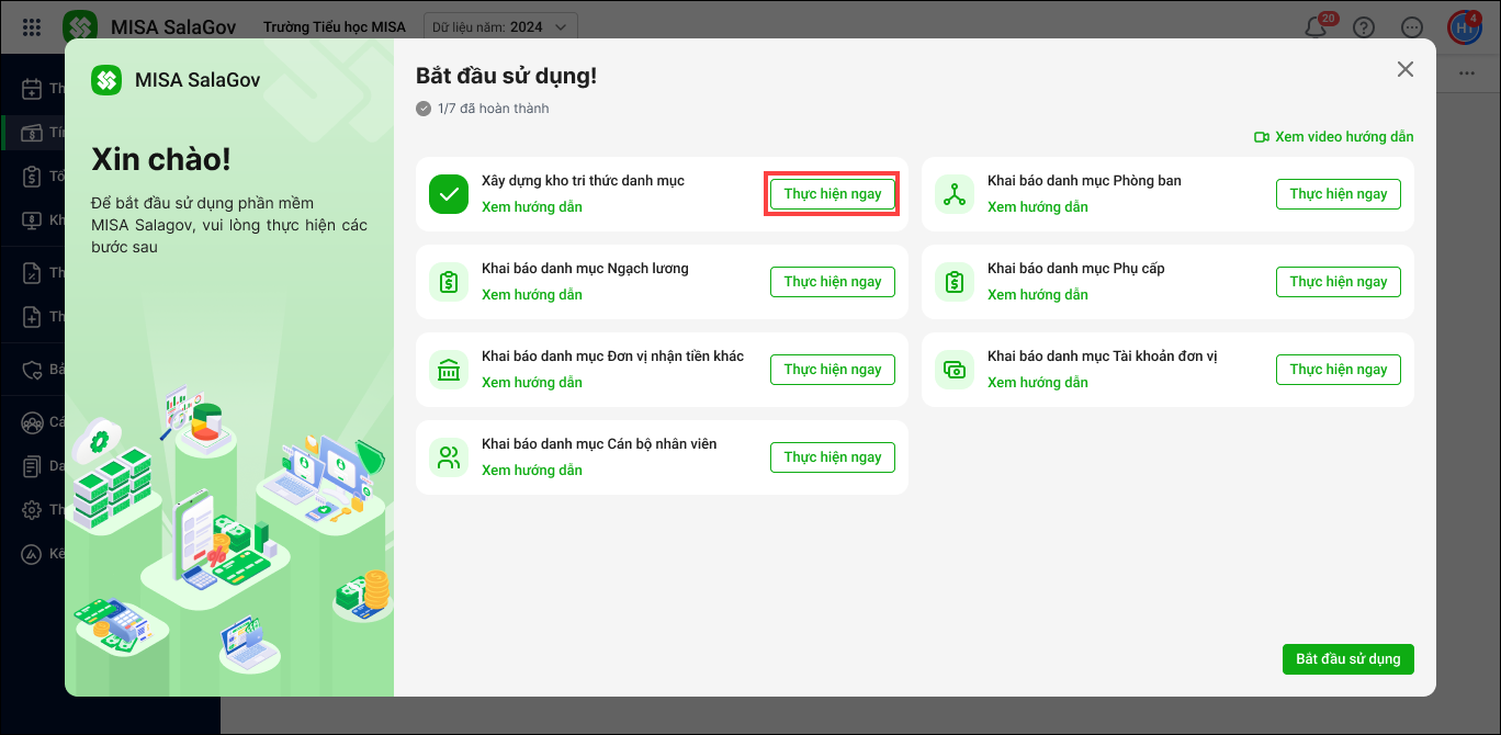 2. Nhấn Thực hiện ngay để vào cập nhật các danh mục