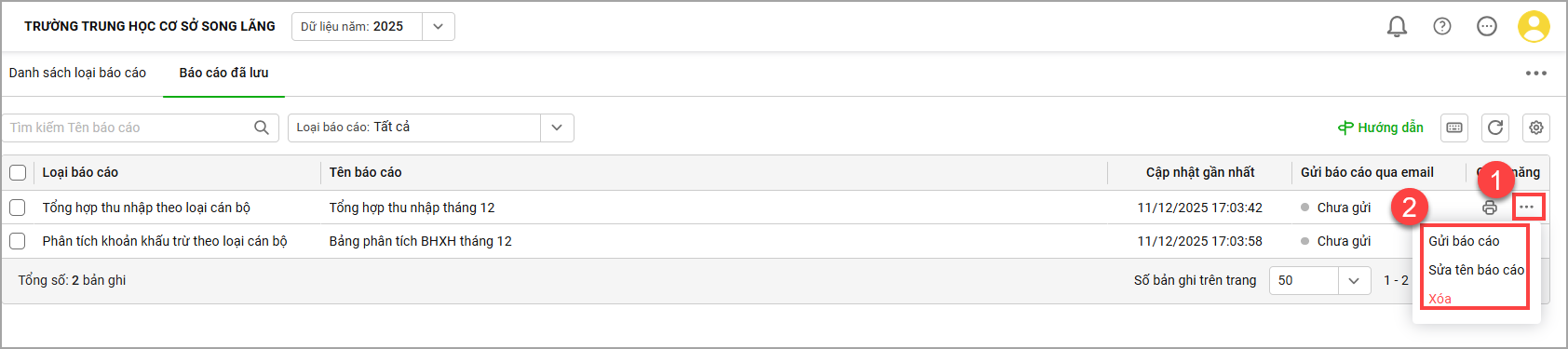 - Có thể nhấn dấu “…” và thực hiện Gửi/Sửa tên/Xóa báo cáo