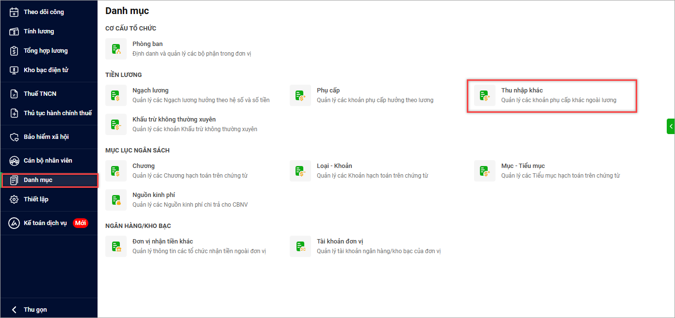 • Thiết lập công thức tính thu nhập khác theo đúng công thức đang áp dụng tại đơn vị.