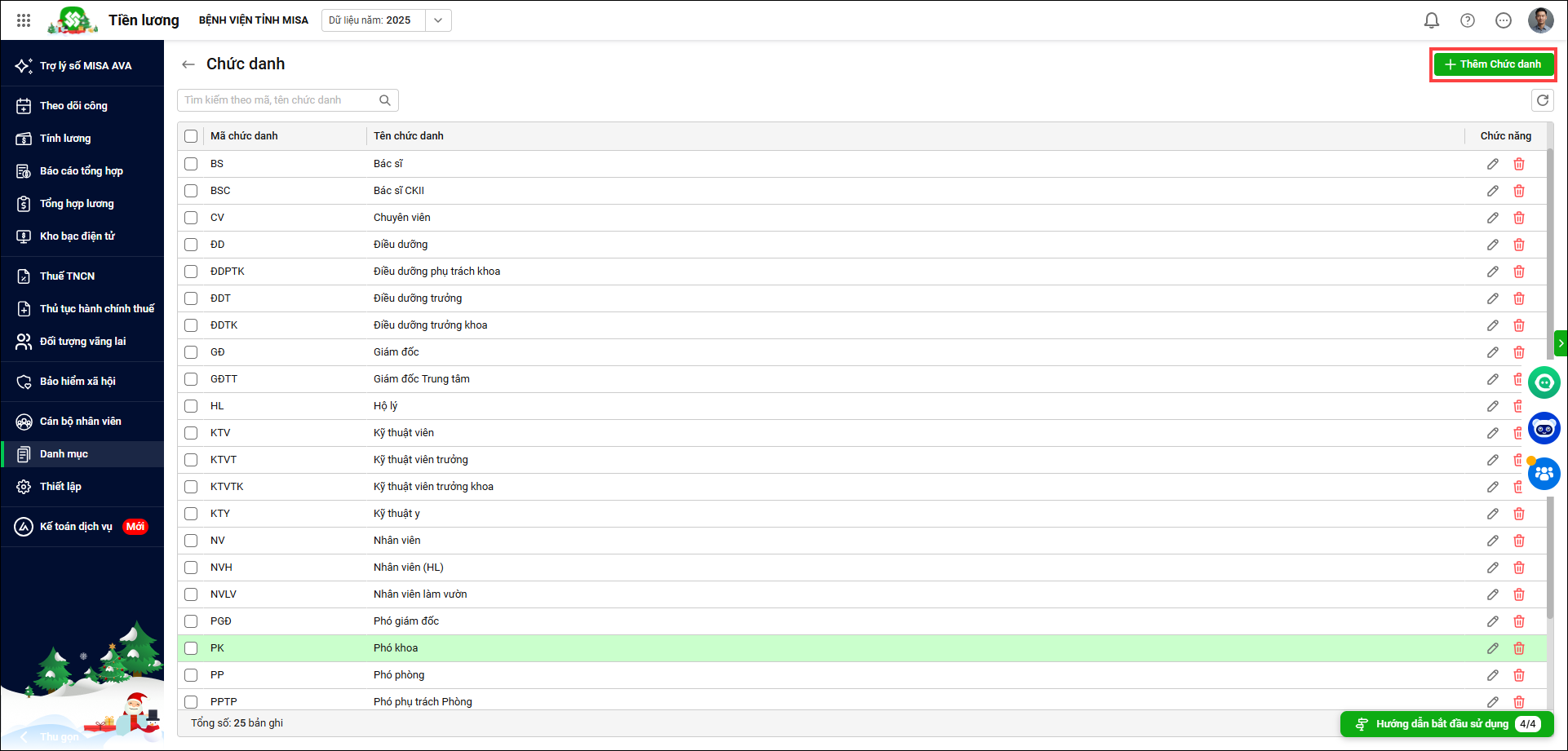 4. [Đơn vị y tế] Khai báo danh mục chức danh
