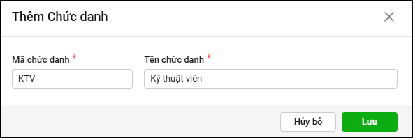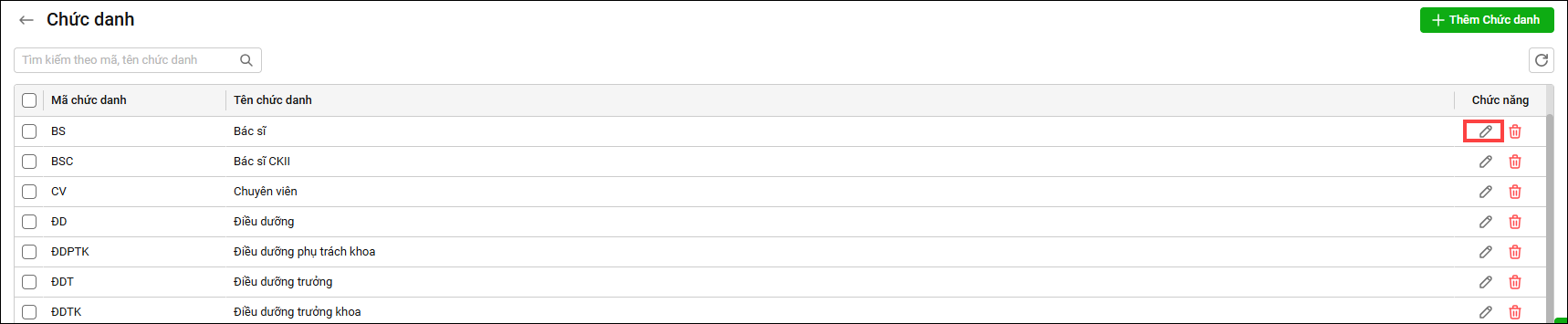 [Đơn vị y tế] Khai báo danh mục chức danh