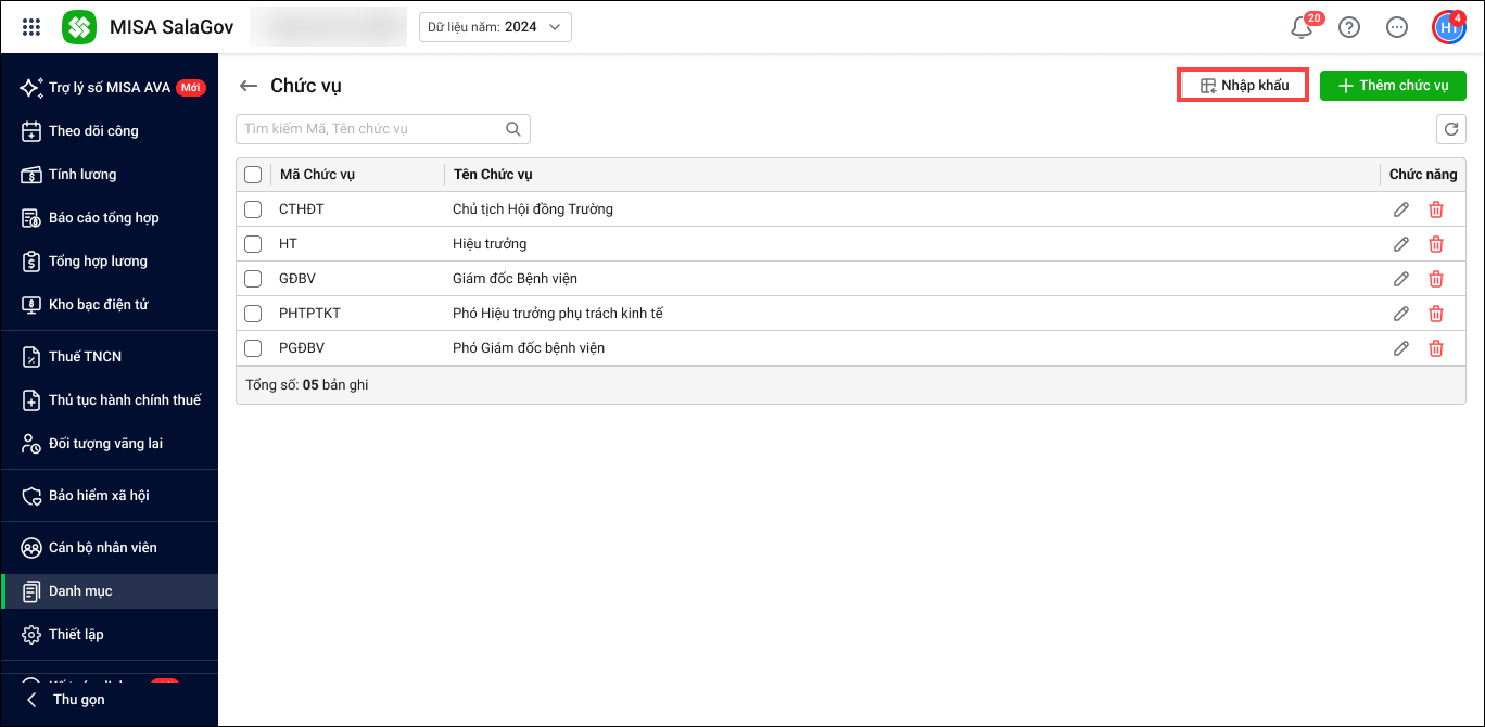 4. [Đơn vị y tế] Khai báo danh mục chức vụ