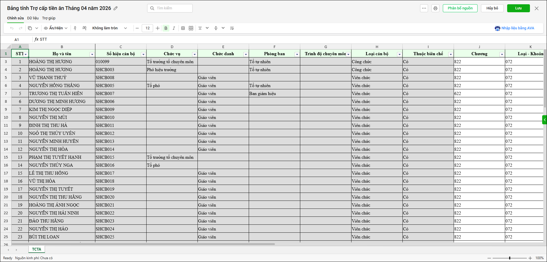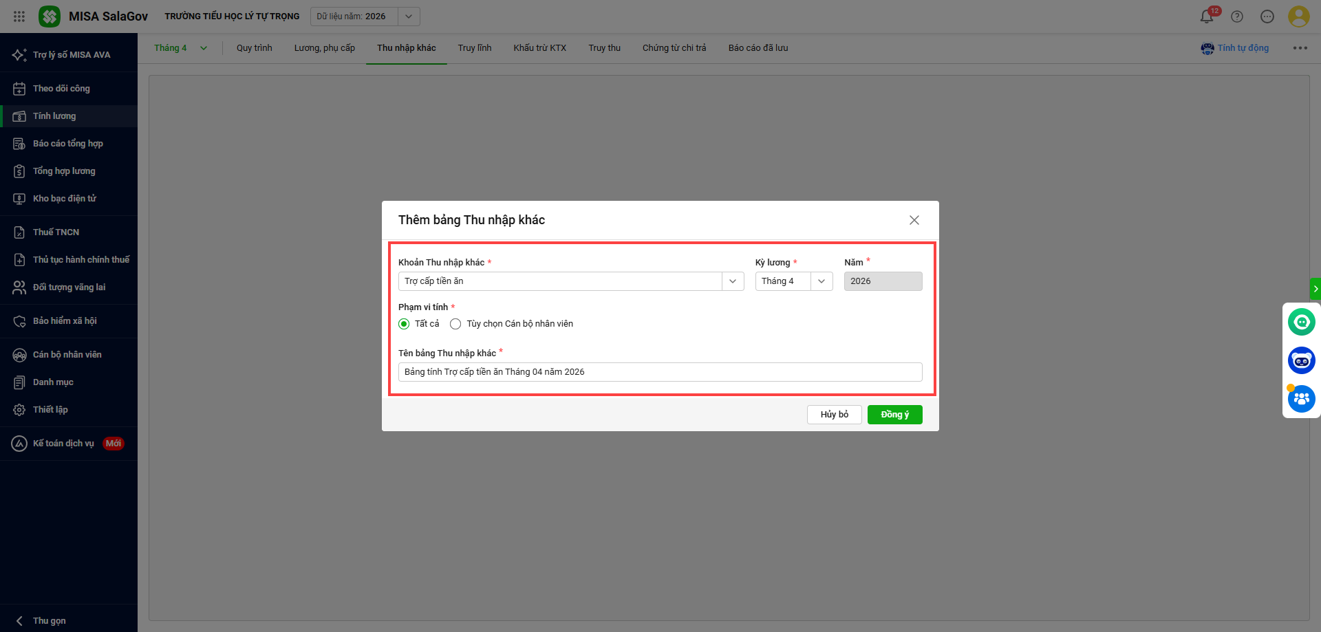 3. Khi đơn vị có số liệu bảng thu nhập khác giống hệt, hoặc gần giống với tháng trước. Để sinh để sinh được bảng thu nhập khác từ tháng trước sang tháng này anh/chị thực hiện như sau: