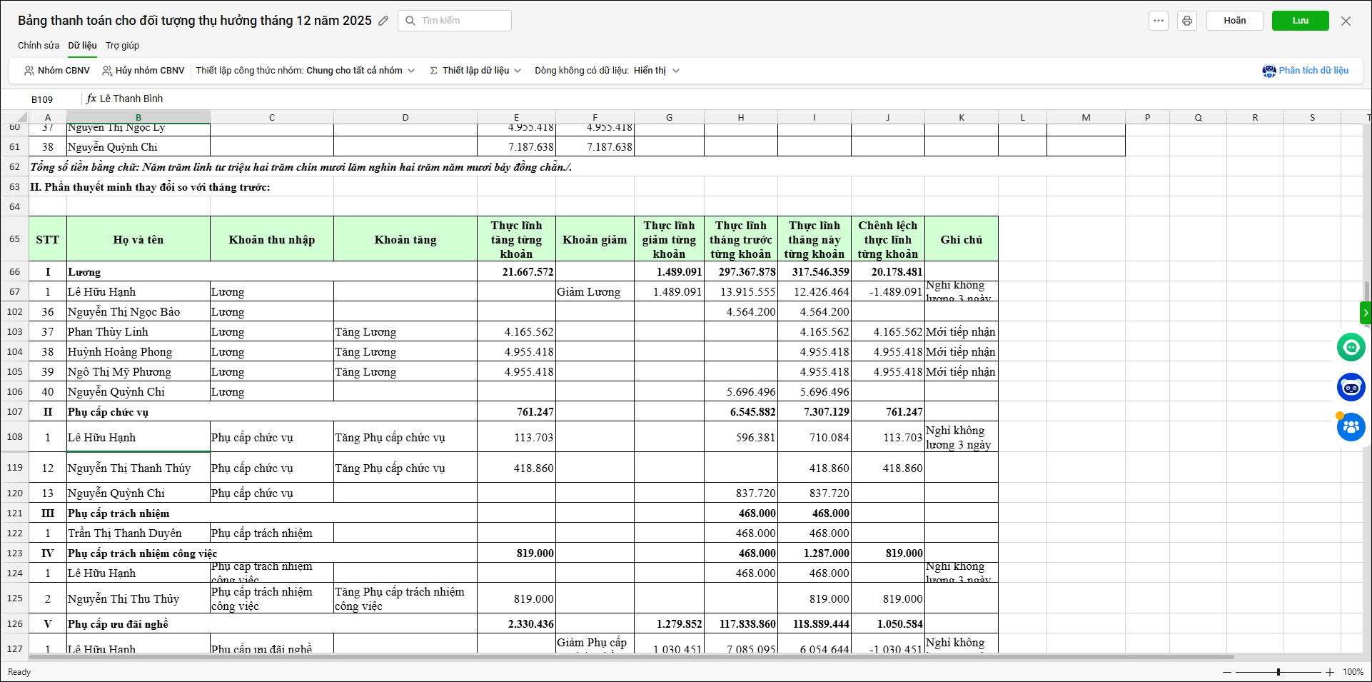 3.2. Thuyết minh nhóm theo khoản lương, phụ cấp