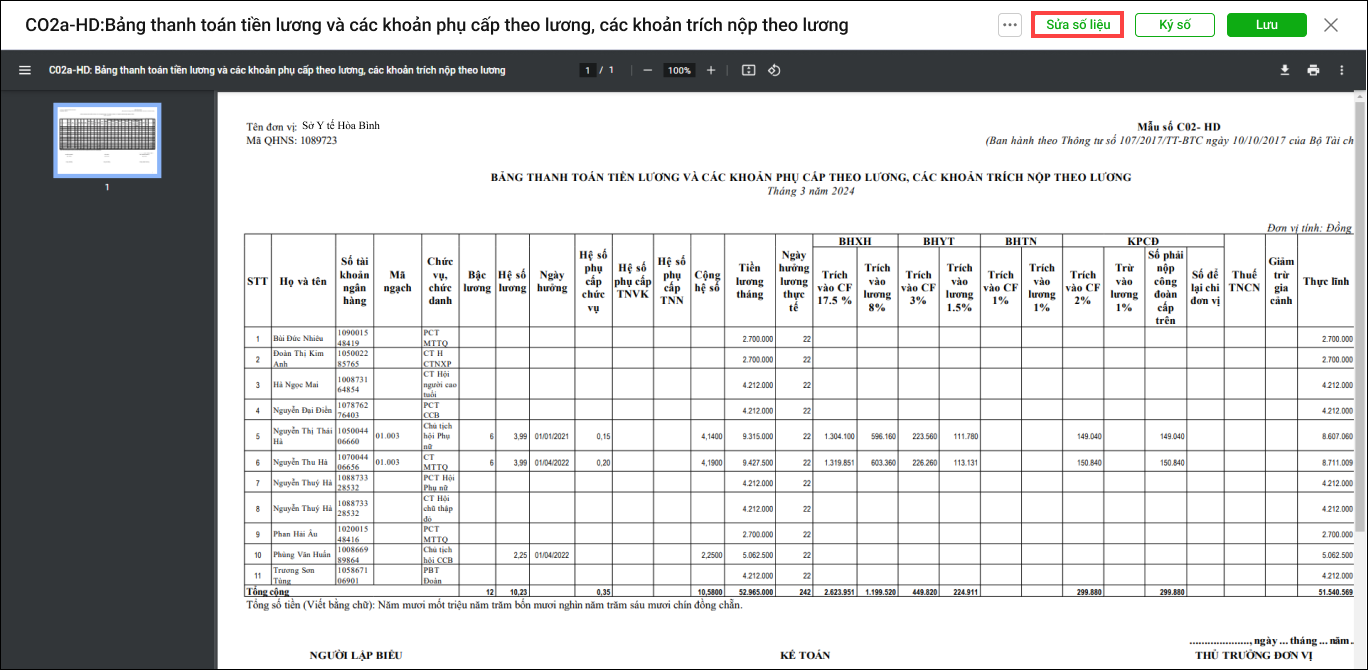 1. Nhấn sửa số liệu trên mẫu C02a – HD
