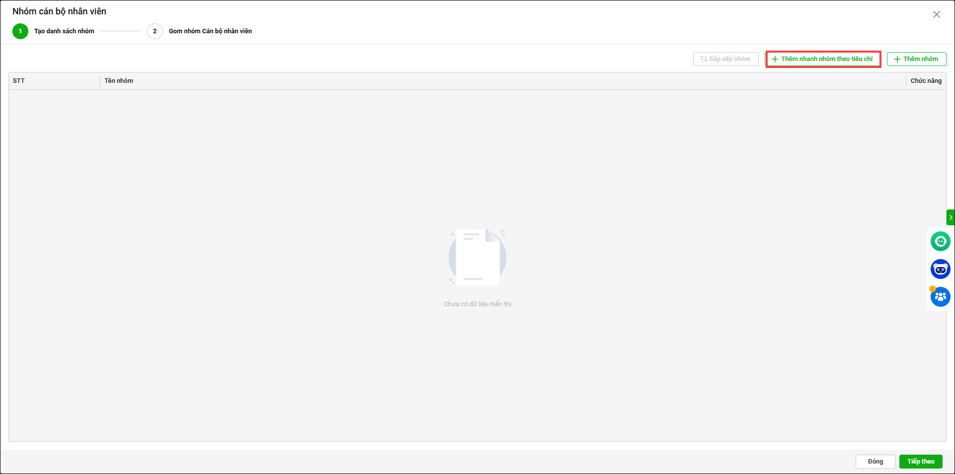 3.1. Anh/chị chọn Thêm nhóm nhanh theo tiêu chí