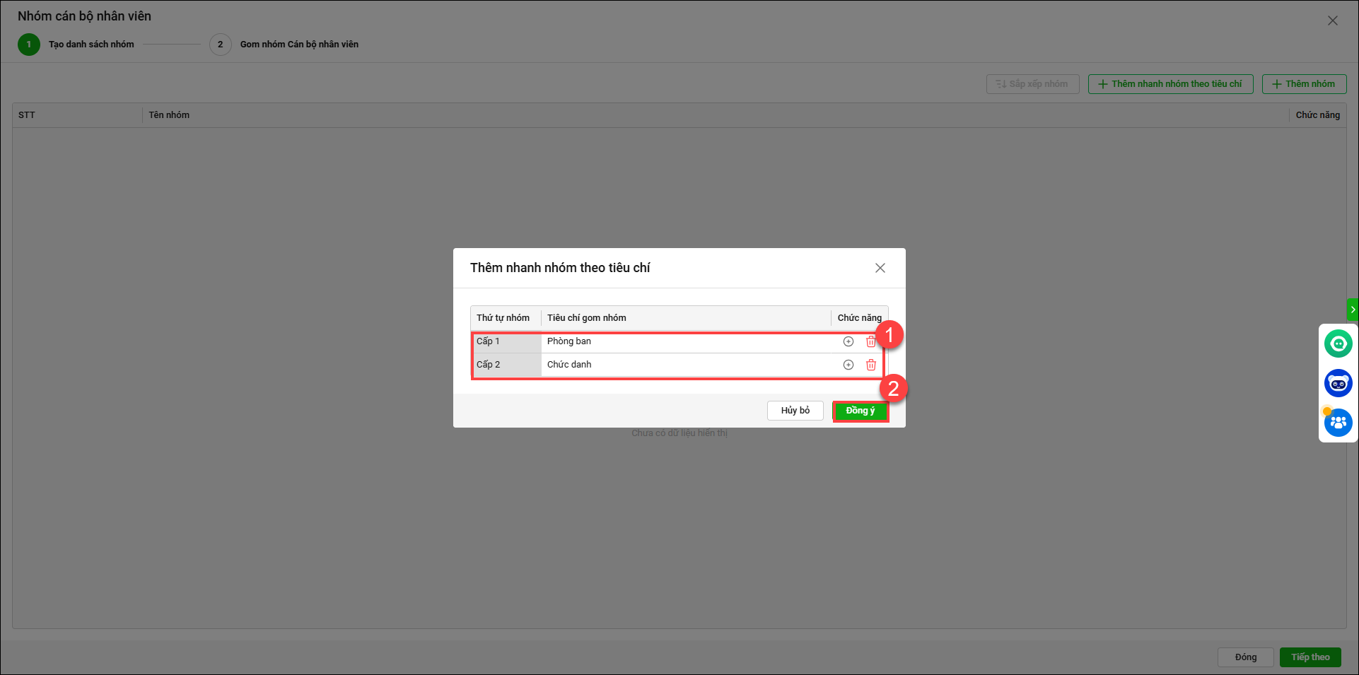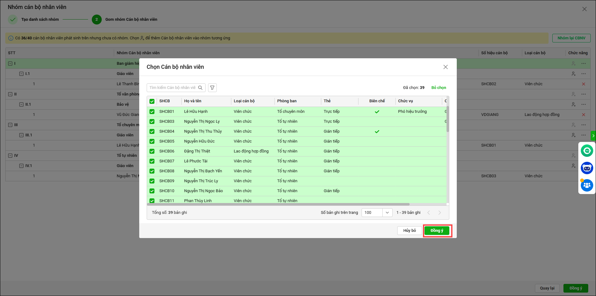 • Nhấn Đồng ý để lưu lại thiết lập gom nhóm CBNV