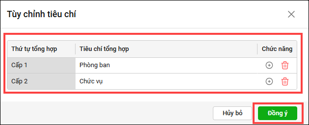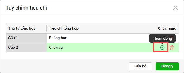 • Tại màn Tùy chỉnh tiêu chí, khai báo thêm các thông tin theo từng cấp.
