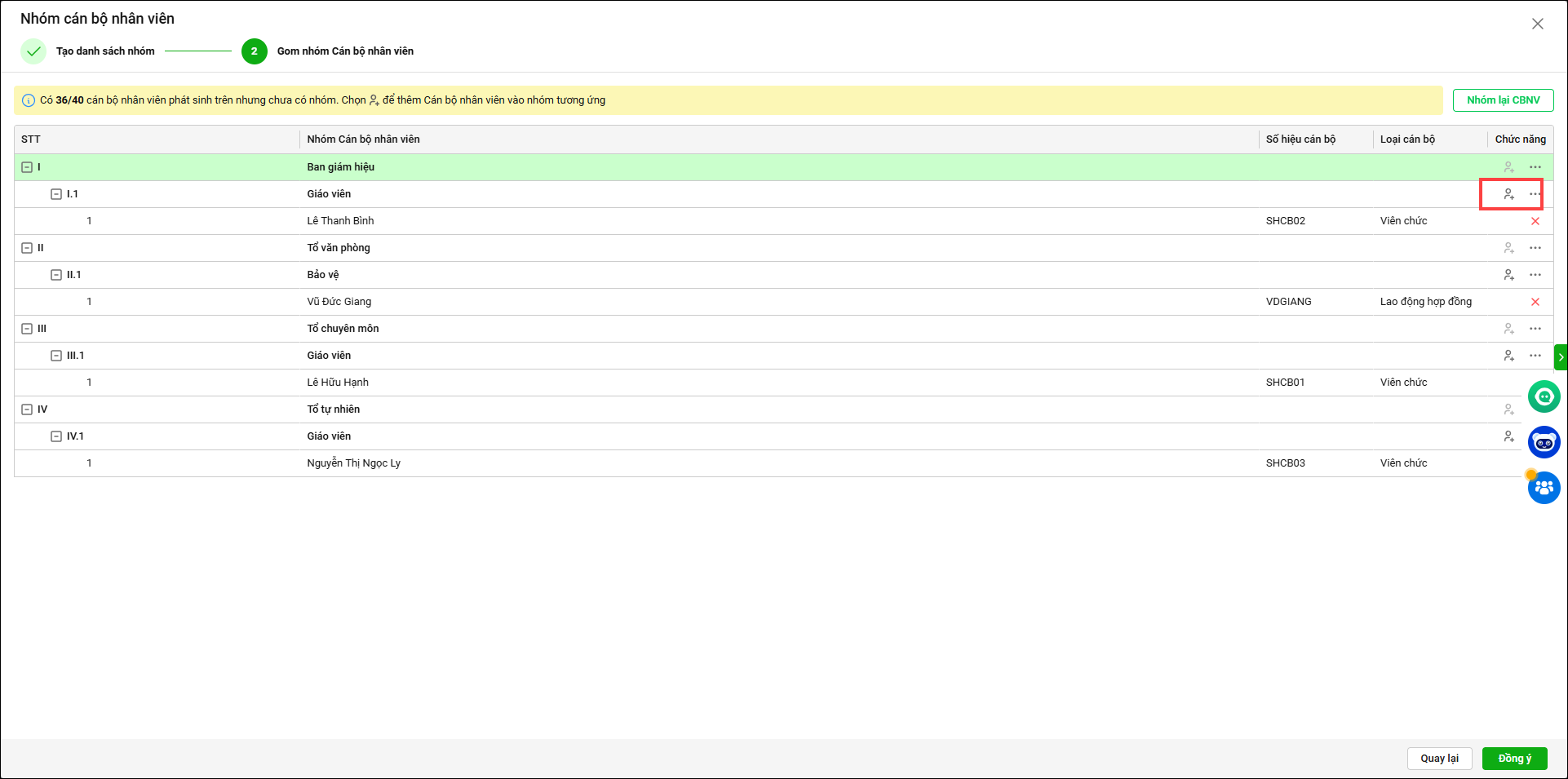 3.6. Tại màn hình Nhóm cán bộ nhân viên