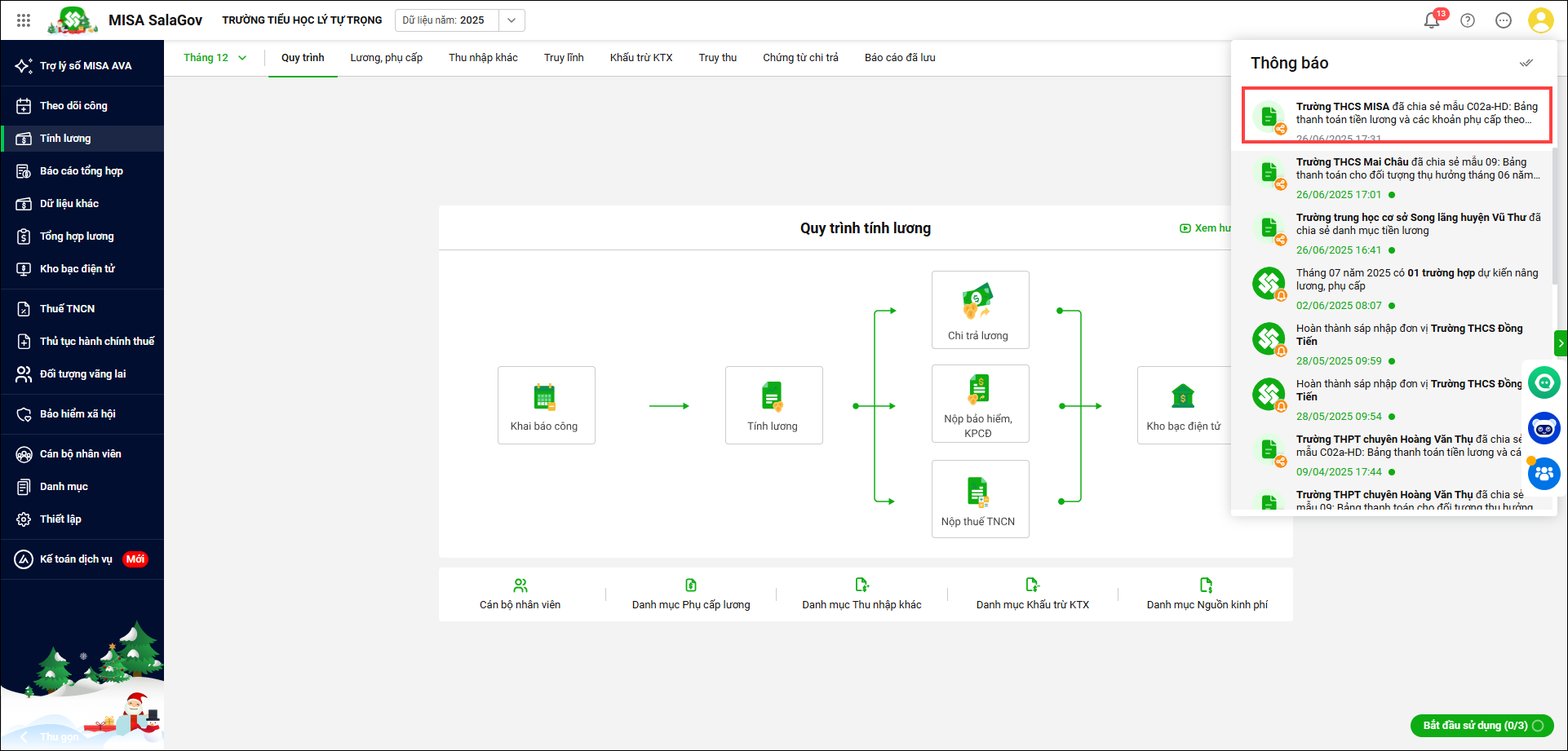 Đối với đơn vị được chia sẻ báo cáo, sau khi đăng nhập vào phần mềm, họ sẽ nhận được thông báo về báo cáo đã được chia sẻ. Khi chọn thông báo này, phần mềm cho phép đơn vị lập mẫu C02a-HD theo mẫu đã được chia sẻ.