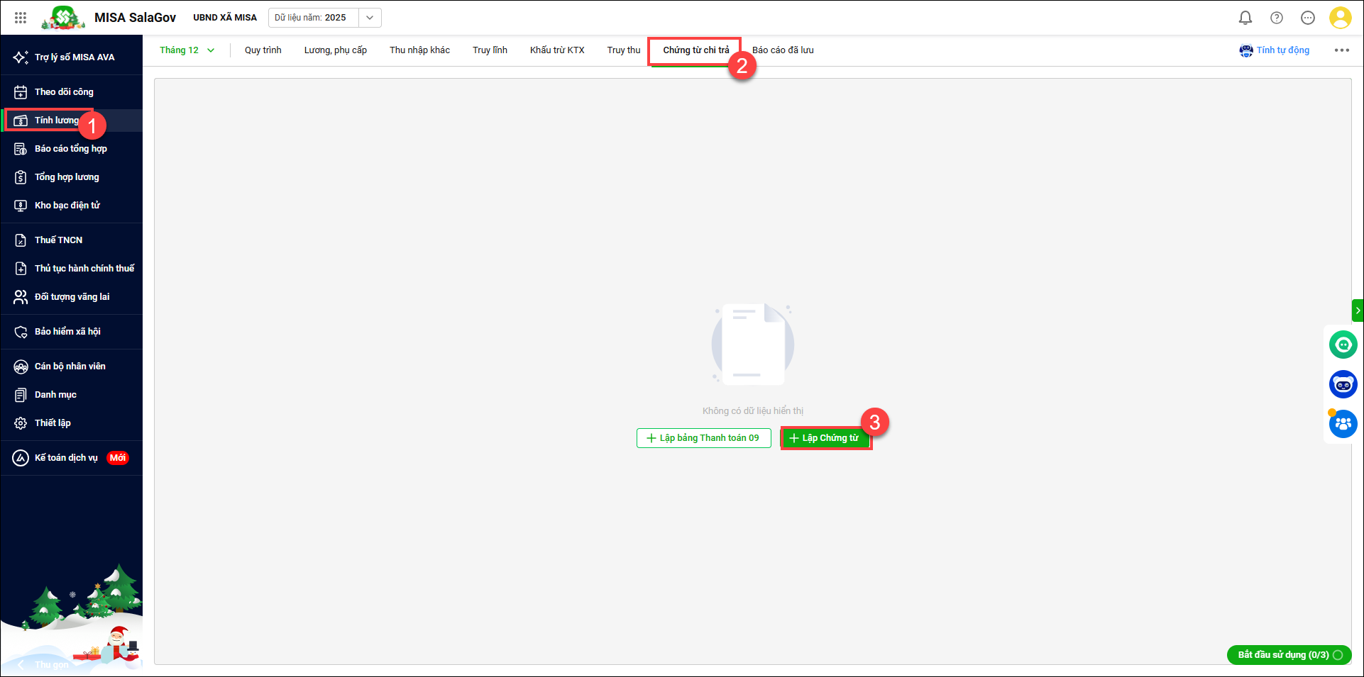 - Vào Tính lương/Chứng từ chi trả, bấm chọn Lập chứng từ.