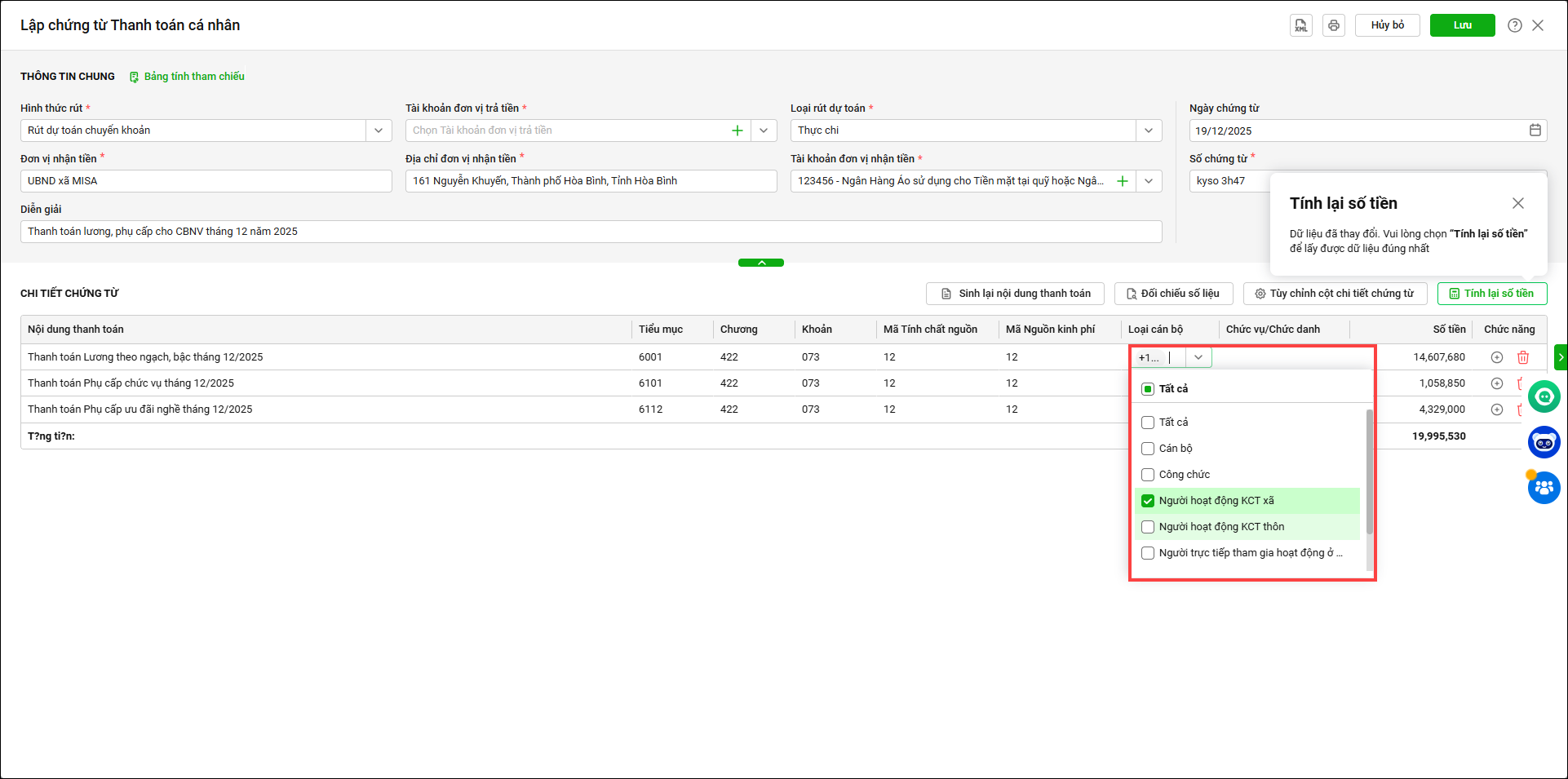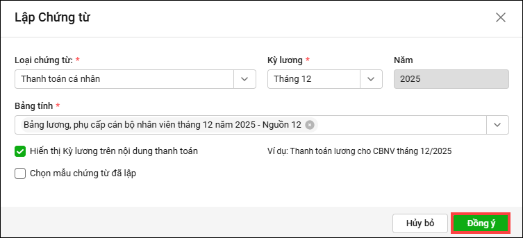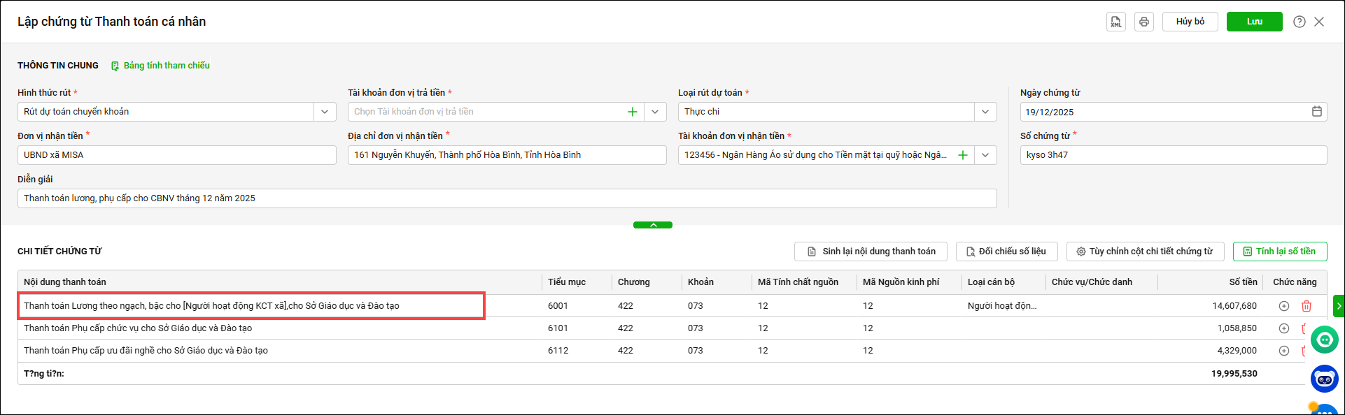 4. Trên chứng từ thanh toán, tại mục nội dung thanh toán đã hiển thị theo từng chức danh cụ thể.