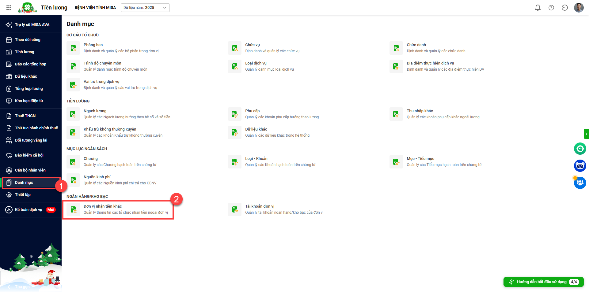 1. Vào Danh mục/Đơn vị nhận tiền khác