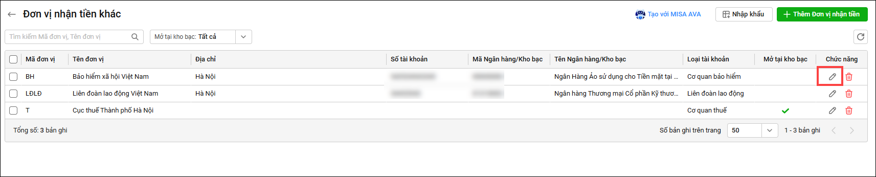 4. Kế toán muốn sửa được mã tên ngân hàng, kho bạc đúng mong muốn