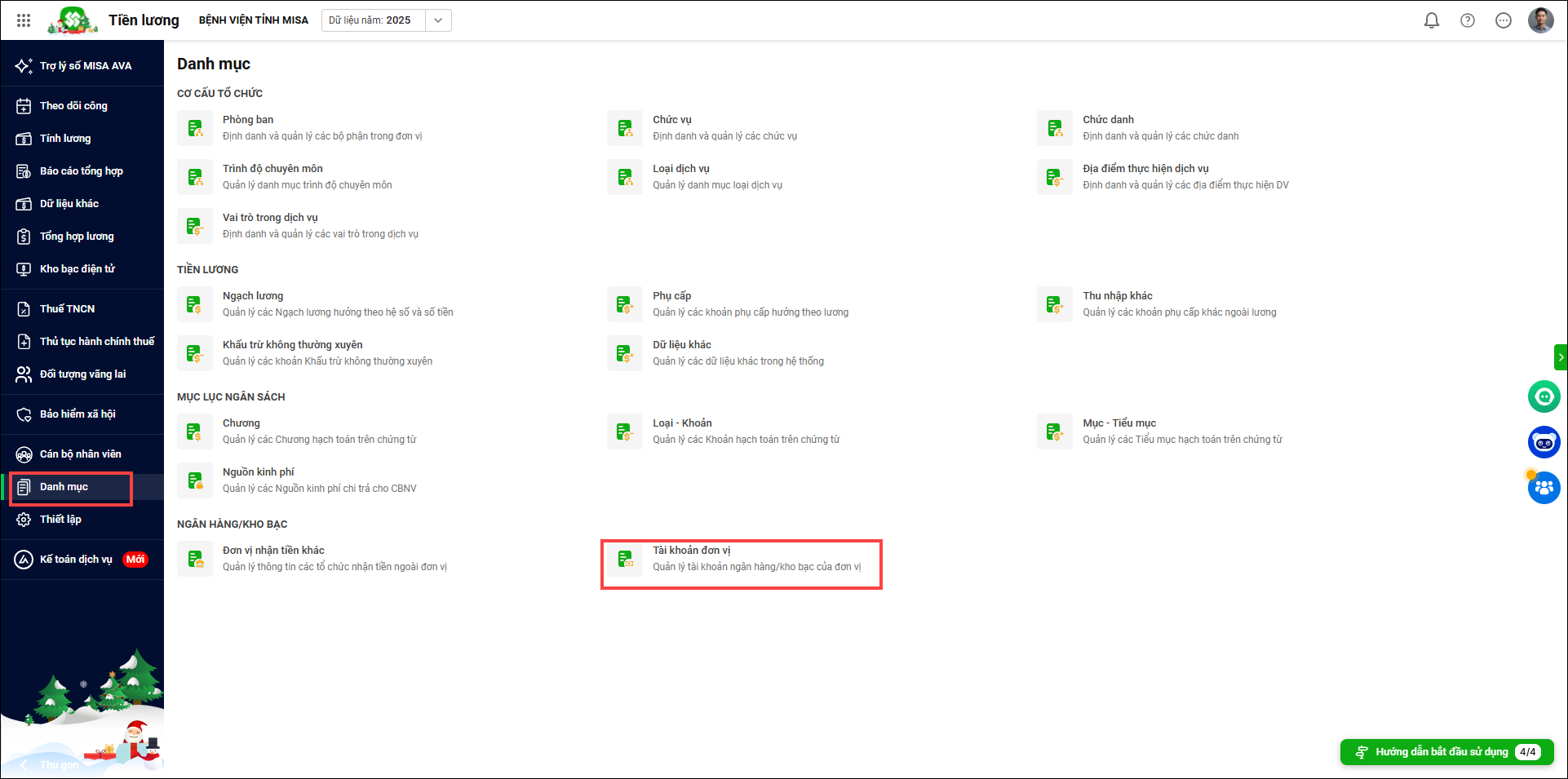 2. Vào Danh mục/Tài khoản đơn vị