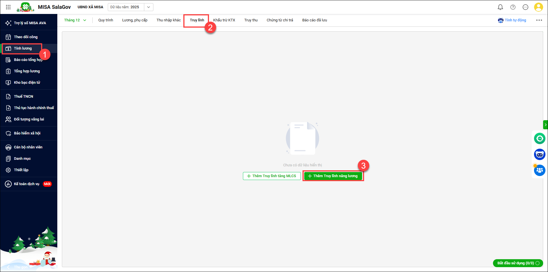 - Vào Tính lương/Truy lĩnh, nhấn Thêm truy lĩnh nâng lương