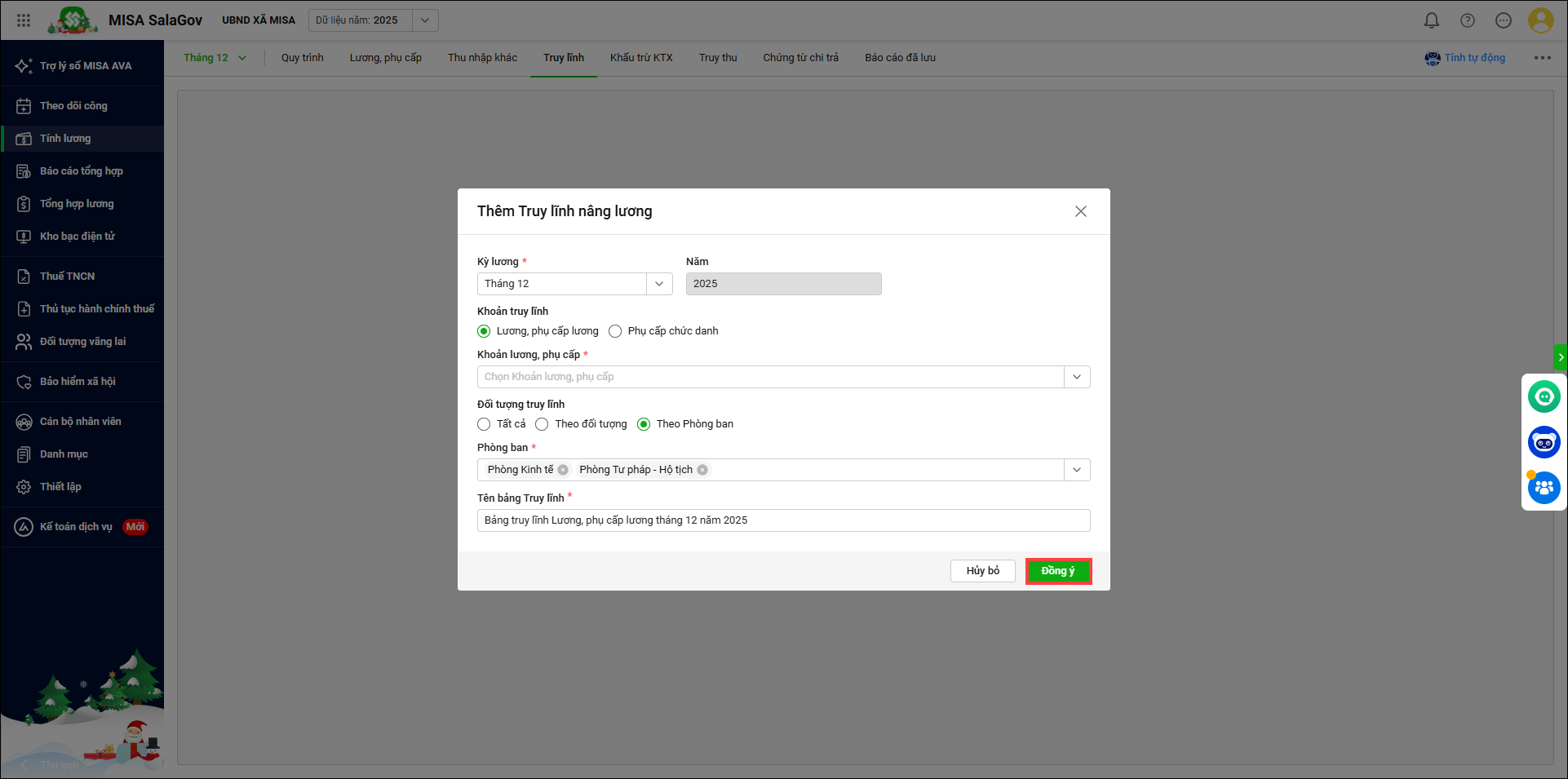 - Từ phiên bản R13: Kế toán xã lập được bảng tính truy lĩnh lương theo phòng ban ngay trên phần mềm.