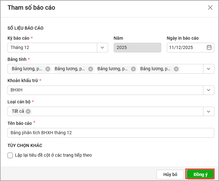 - Khoản khấu trừ: Lựa chọn 1 trong các khoản như BHYT, BHXH, BHTN, KPCD