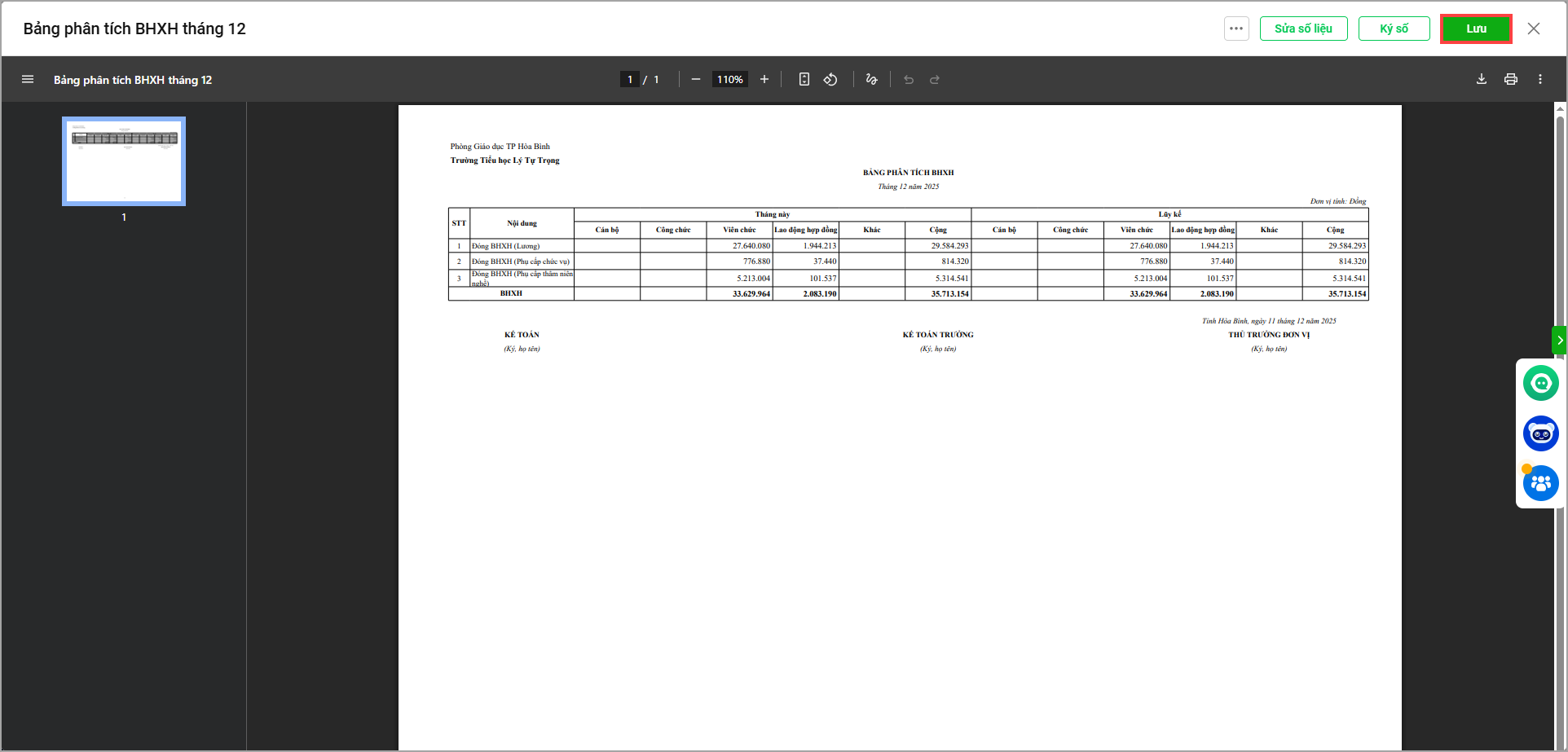 4. Nhấn Sửa số liệu để cập nhật lại số liệu trong báo cáo