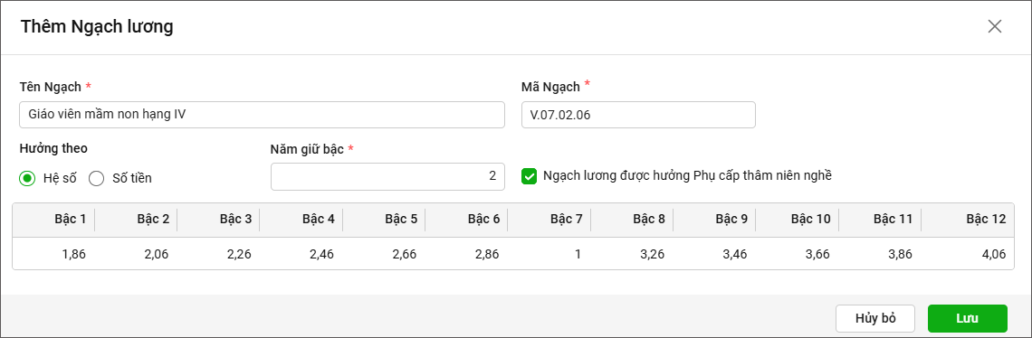 Cán bộ có thể khai báo danh mục Ngạch lương theo 1 trong 3 cách: