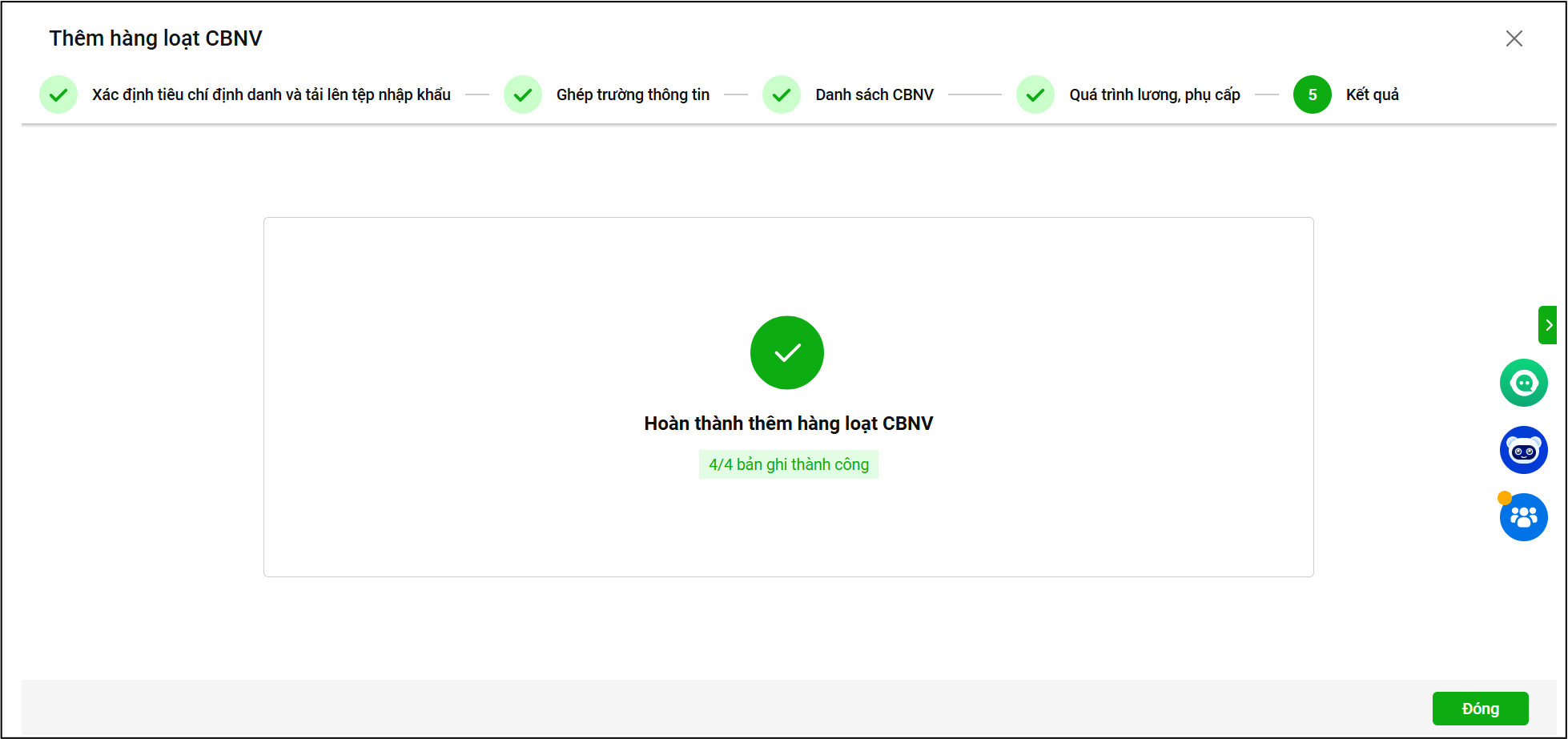 Bước 8: Phần mềm hiện ra kết quả nhập khẩu, nhấn Đóng để hoàn tất thao tác