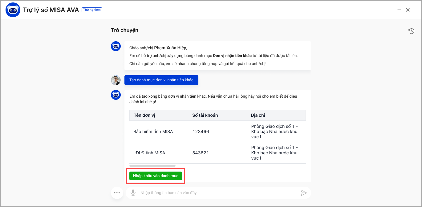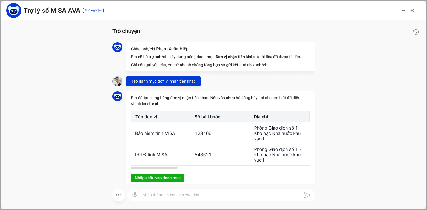 Bài viết này hướng dẫn cán bộ tổ chức cách sử dụng Trợ lý ảo AI để xây dựng danh mục đơn vị nhận tiền một cách nhanh chóng, giúp tối ưu hoá quy trình và tiết kiệm thời gian.