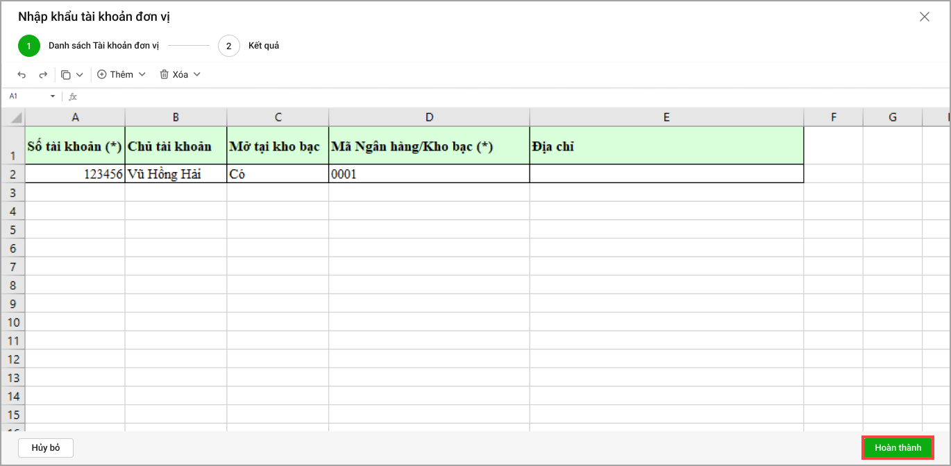 5. Sau đó nhấn Hoàn thành để hoàn tất khai báo danh mục đơn vị nhận tiền khác