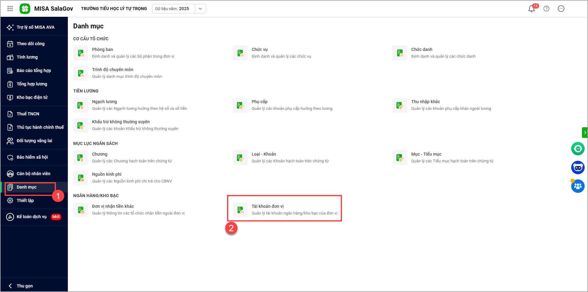 - Vào Danh mục/Đơn vị tài khoản nhận tiền