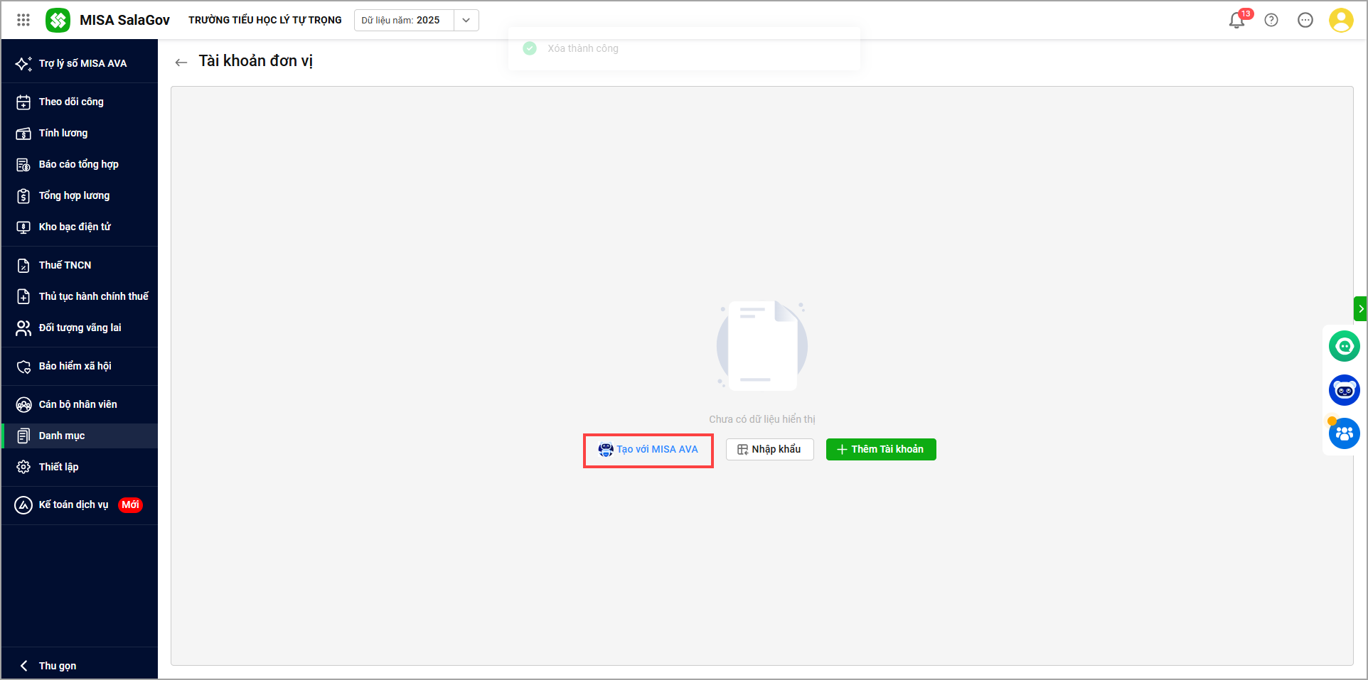 3. MISA AVA hỗ trợ tạo bảng tài khoản đơn vị.